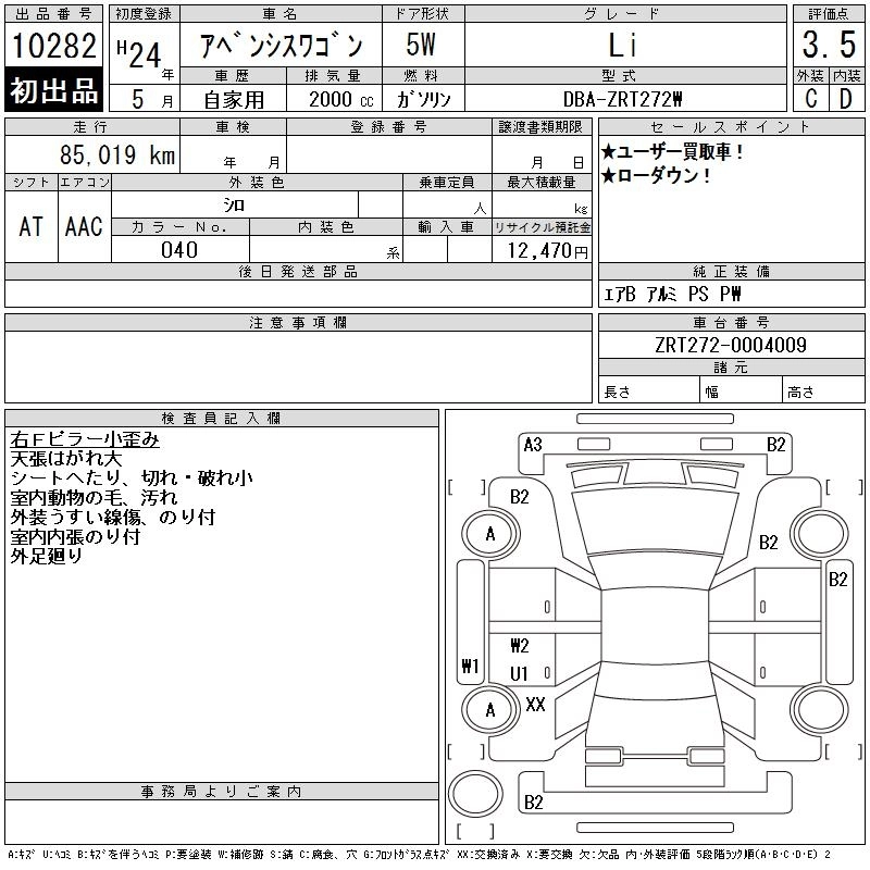 TOYOTA AVENSIS WAGON 2012 г., лот № 10282