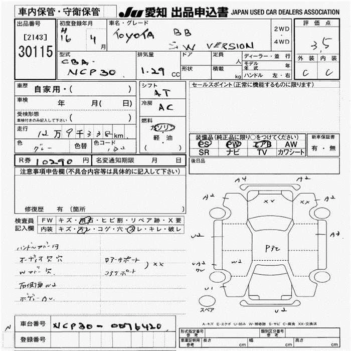 TOYOTA BB 2004 г., лот № 30115