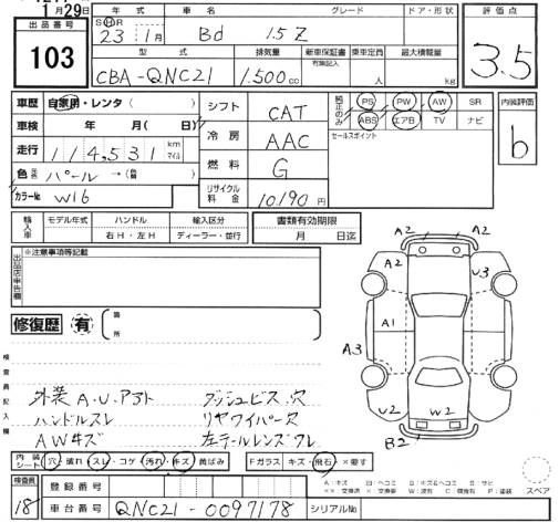 Стартовая цена авто на аукционе 0 ¥