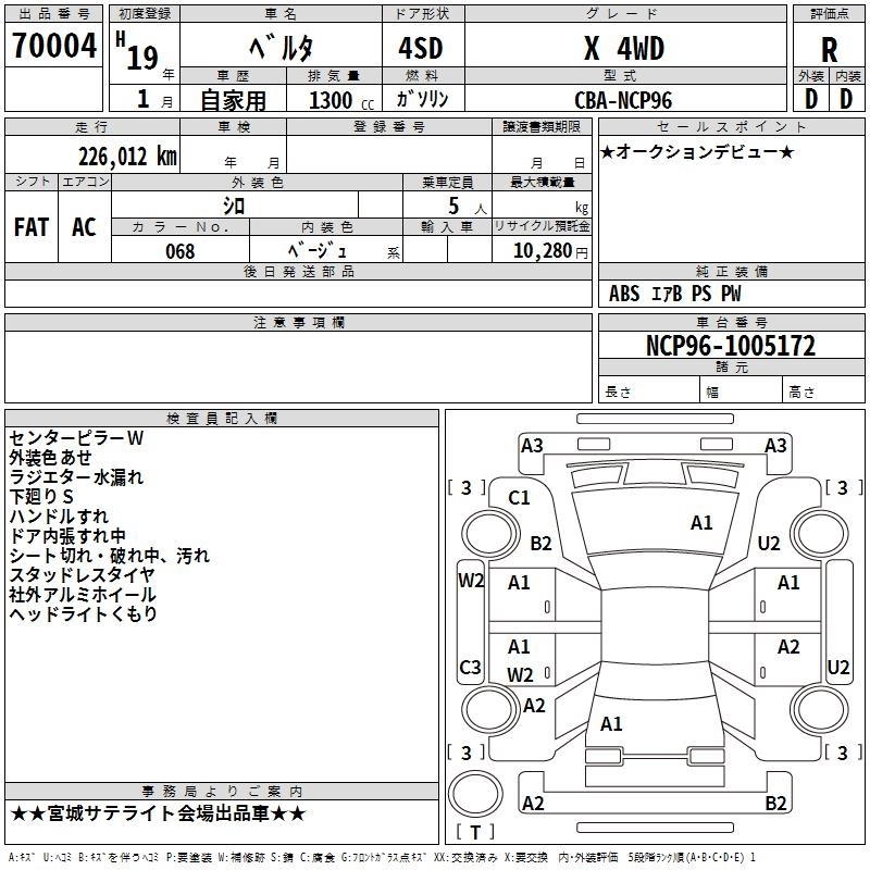 TOYOTA BELTA 2007 г., лот № 70004