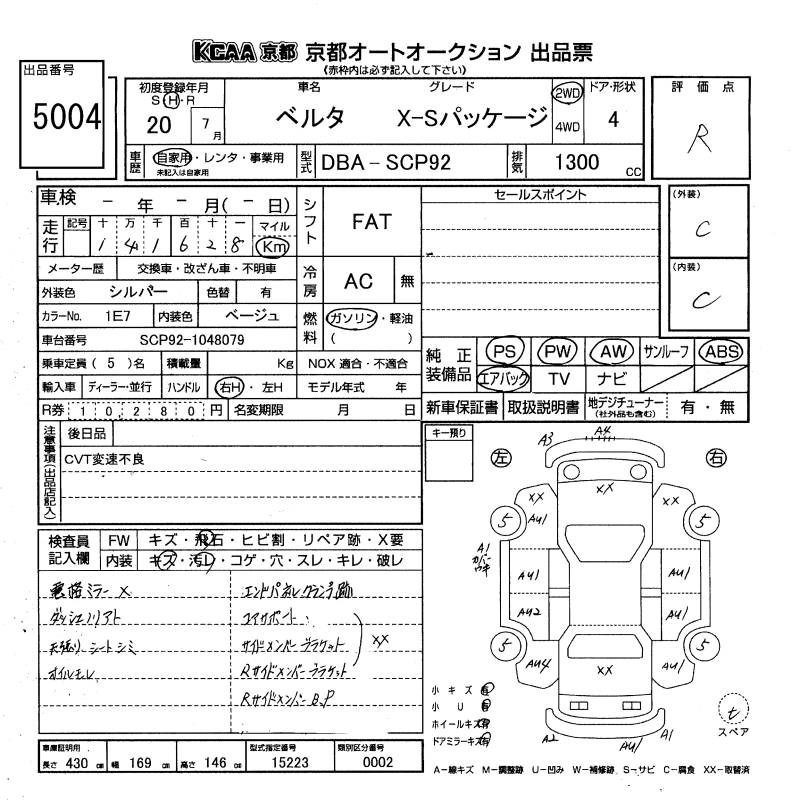 | X | DBA-SCP92 | 2SZ-FE | FF | CVT | 1296cc | 87ps(64kW)/6000rpm | AИ-92 | 1 415 000 | |