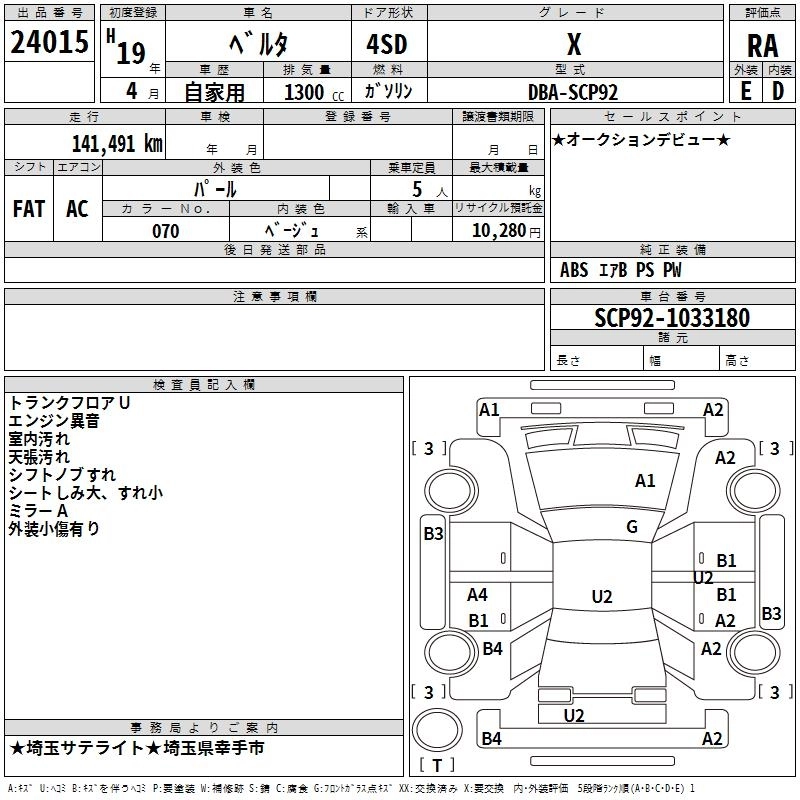 TOYOTA BELTA 2007 г., лот № 24015