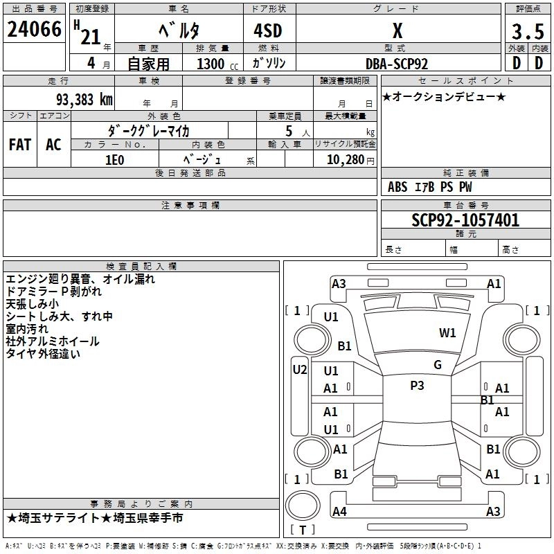 X L PACKAGE DBA-SCP92 2SZ-FE FF CVT 1296cc 87ps(64kW)/6000rpm AИ-92 1 480 000