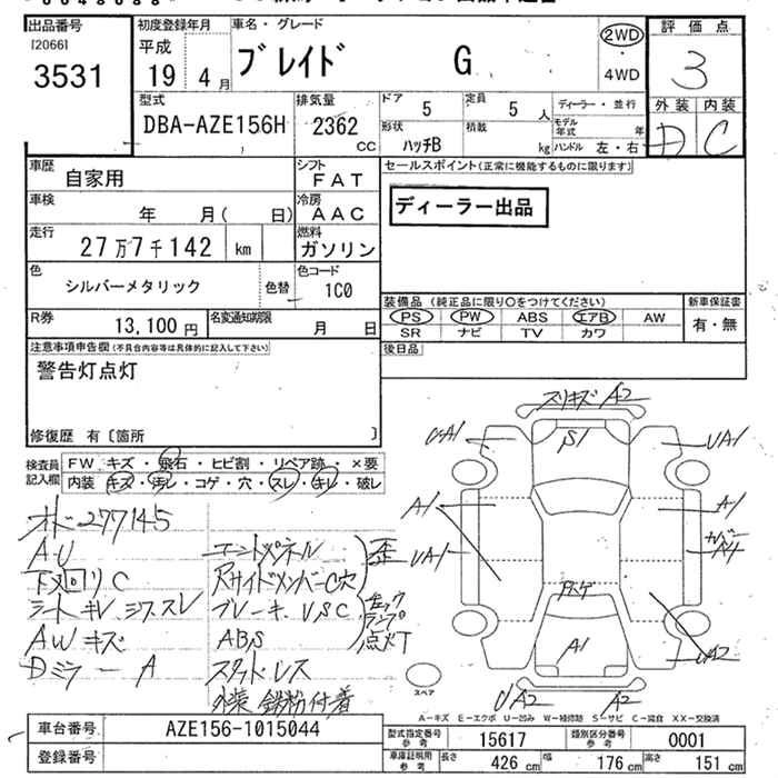 TOYOTA BLADE 2007 г., лот № 3531