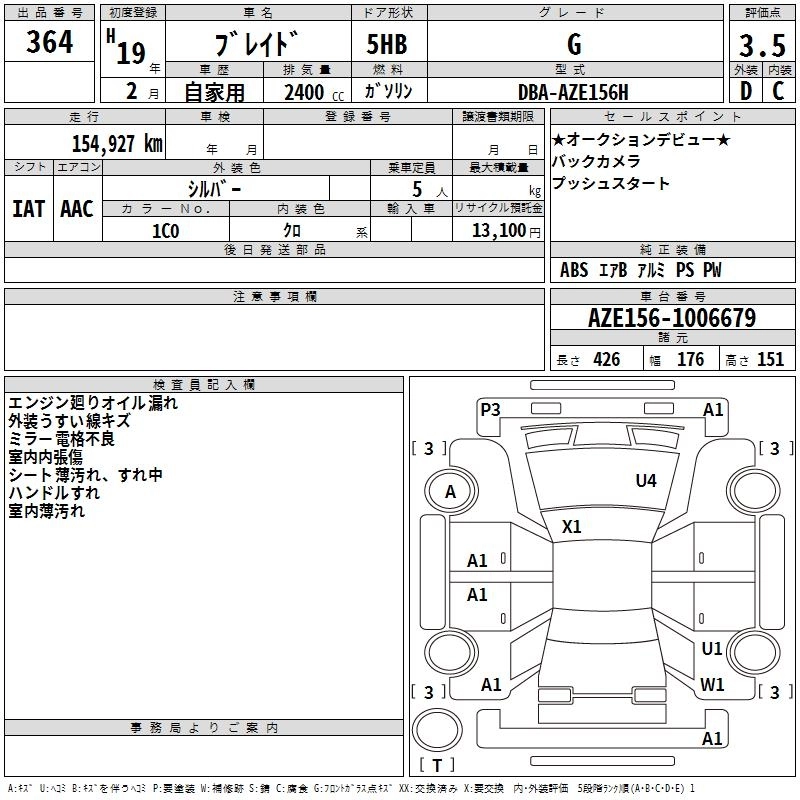 TOYOTA BLADE 2007 г., лот № 364
