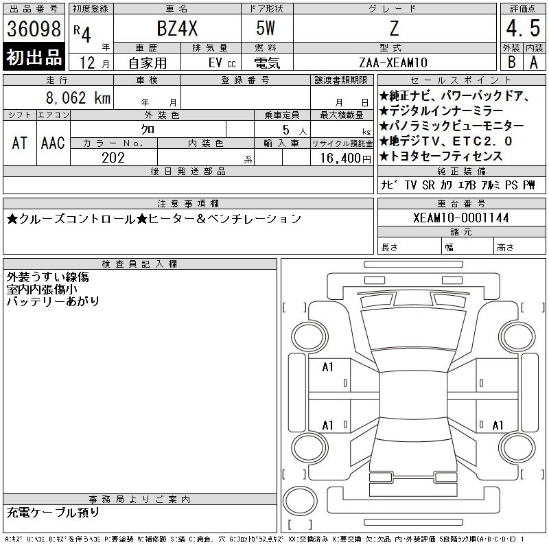 TOYOTA BZ4X 2022 г., лот № 36098