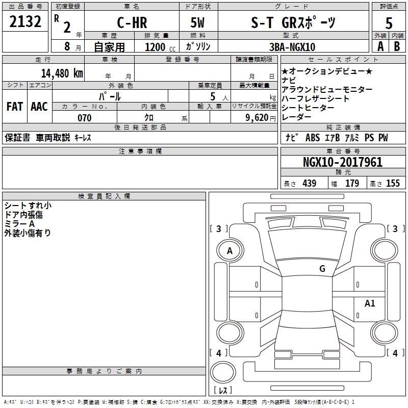 | S-T | 3BA-NGX10 | 8NR-FTS | FF | CVT | 1196cc | 116ps(85kW)/5200~5600rpm | AИ-92 | 2 415 000 | |