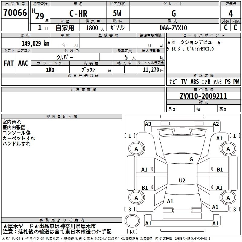 TOYOTA C-HR 2017 г., лот № 70066