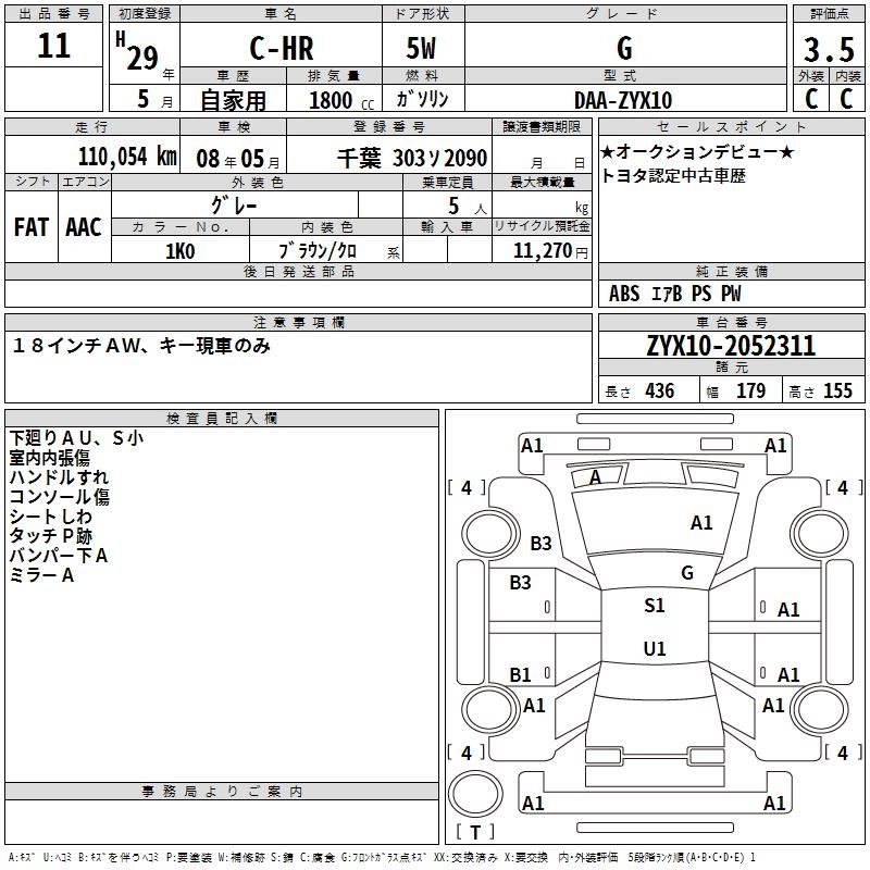 TOYOTA C-HR 2017 г., лот № 11