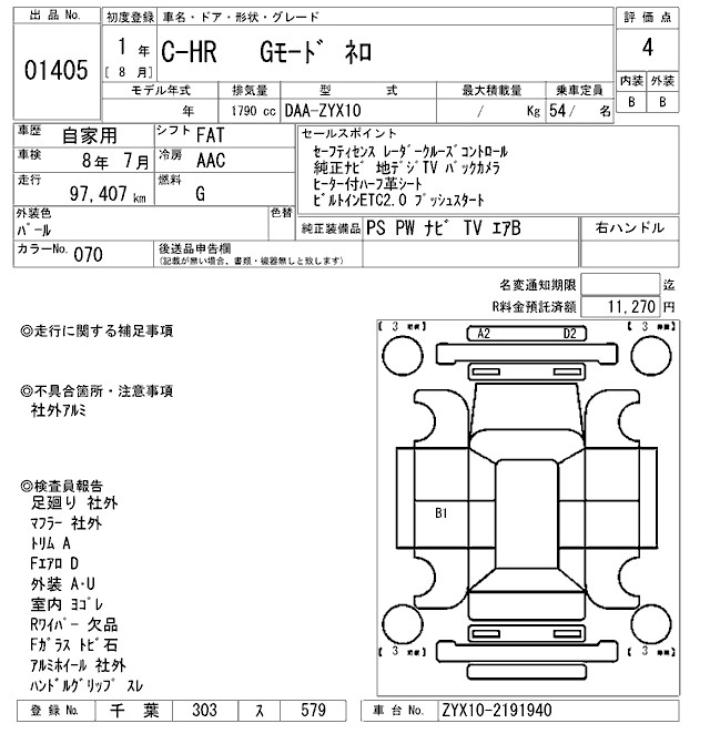 | S | 6AA-ZYX11 | 2ZR-FXE | FF | CVT | 1797cc | 98ps(72kW)/5200rpm | AИ-92 | 2 730 000 | |