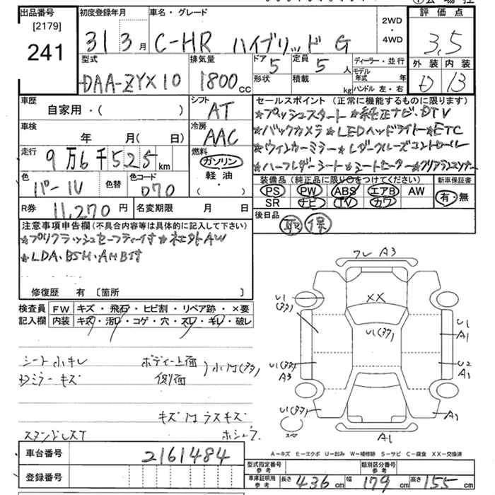 | S | 6AA-ZYX11 | 2ZR-FXE | FF | CVT | 1797cc | 98ps(72kW)/5200rpm | AИ-92 | 2 730 000 | |