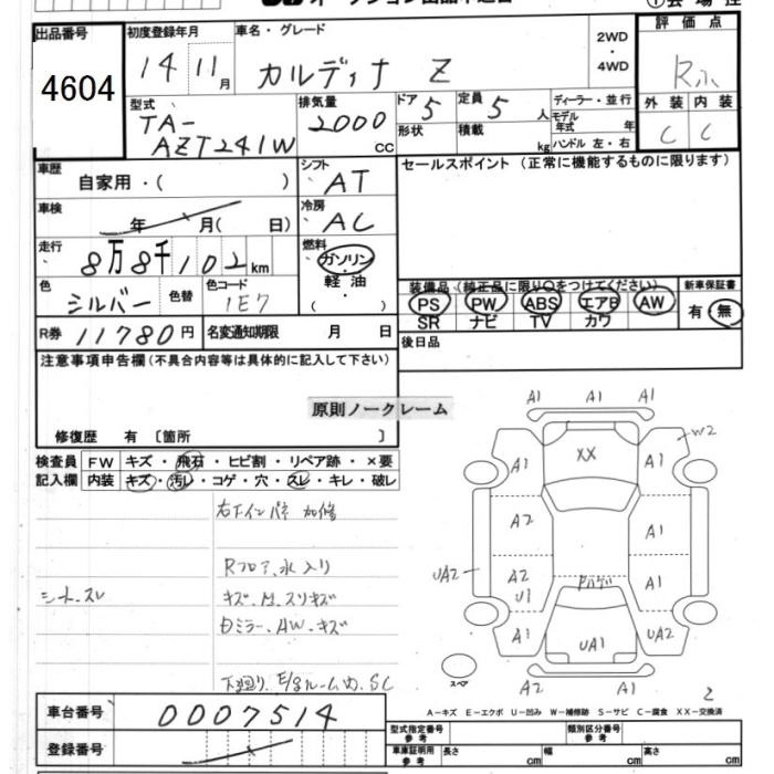 | Z | TA-AZT246W | 1AZ-FSE(D-4) | Full-time 4WD | 4AT | 1998cc | 150ps(110kW)/6000rpm | AИ-92 | 2 080 000 | |