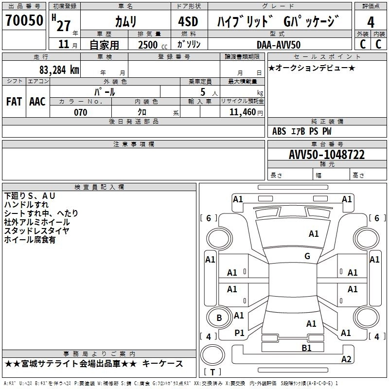 | HYBRID LEATHER PACKAGE | DAA-AVV50 | 2AR-FXE | FF | CVT | 2493cc | 160ps(118kW)/5700rpm | AИ-92 | 4 028 400 | |