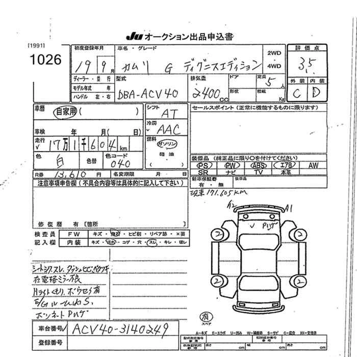 | G | DBA-ACV40 | 2AZ-FE | FF | 5AT | 2362cc | 167ps(123kW)/6000rpm | AИ-92 | 2 478 000 |