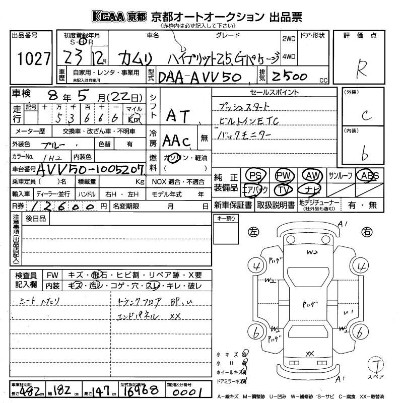| HYBRID | DAA-AVV50 | 2AR-FXE | FF | CVT | 2493cc | 160ps(118kW)/5700rpm | AИ-92 | 3 040 000 |