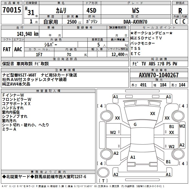 | WS LEATHER PACKAGE | DAA-AXVH70 | A25A-FXS | FF | CVT | 2487cc | 178ps(131kW)/5700rpm | AИ-92 | 4 450 000 | |