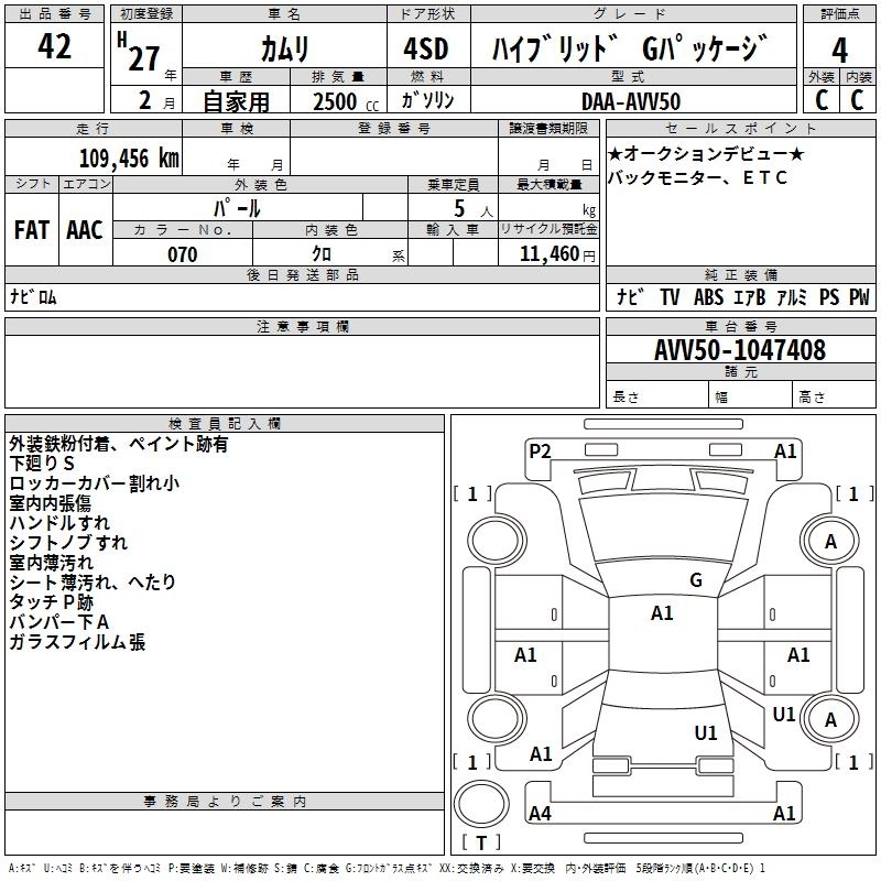 | HYBRID LEATHER PACKAGE | DAA-AVV50 | 2AR-FXE | FF | CVT | 2493cc | 160ps(118kW)/5700rpm | AИ-92 | 4 028 400 | |