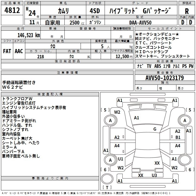 | HYBRID LEATHER PACKAGE | DAA-AVV50 | 2AR-FXE | FF | CVT | 2493cc | 160ps(118kW)/5700rpm | AИ-92 | 3 820 000 | |