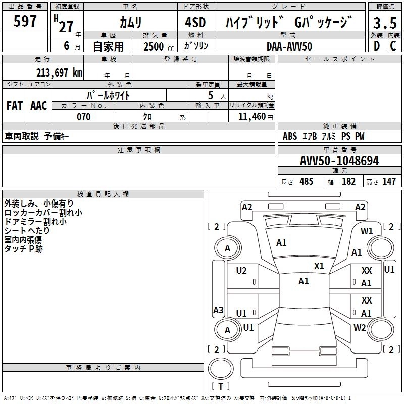 | HYBRID LEATHER PACKAGE | DAA-AVV50 | 2AR-FXE | FF | CVT | 2493cc | 160ps(118kW)/5700rpm | AИ-92 | 4 028 400 | |