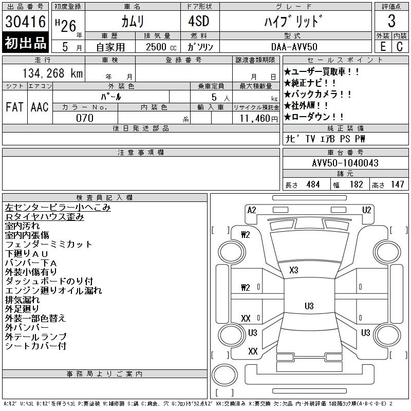 | HYBRID LEATHER PACKAGE | DAA-AVV50 | 2AR-FXE | FF | CVT | 2493cc | 160ps(118kW)/5700rpm | AИ-92 | 3 939 429 | |