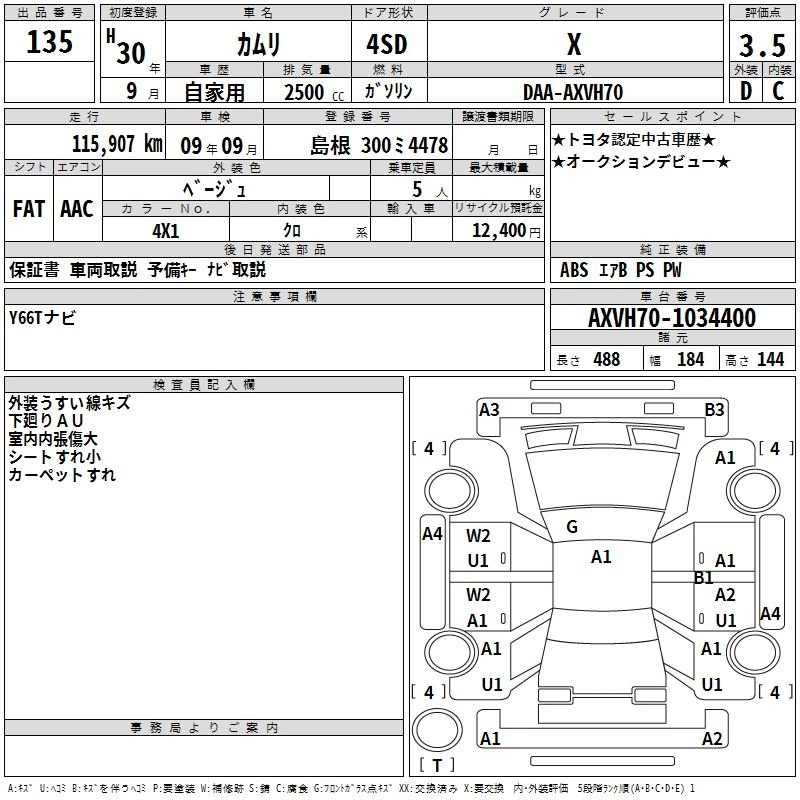 | WS LEATHER PACKAGE | DAA-AXVH70 | A25A-FXS | FF | CVT | 2487cc | 178ps(131kW)/5700rpm | AИ-92 | 4 341 600 | |