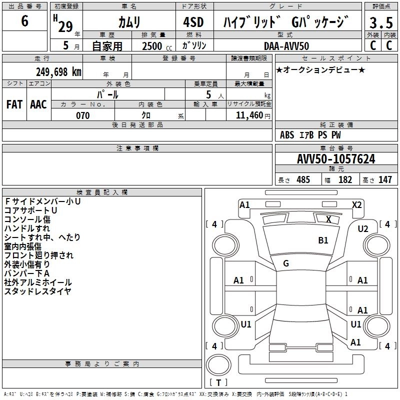 | X | DAA-AXVH70 | A25A-FXS | FF | CVT | 2487cc | 178ps(131kW)/5700rpm | AИ-92 | 3 294 000 |