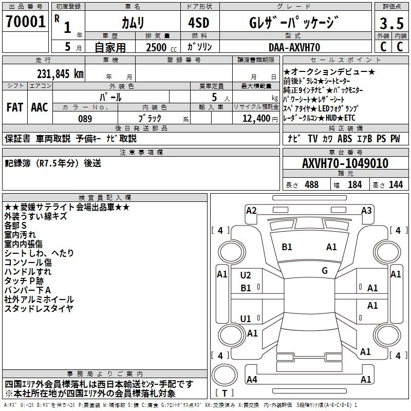 | WS LEATHER PACKAGE | DAA-AXVH70 | A25A-FXS | FF | CVT | 2487cc | 178ps(131kW)/5700rpm | AИ-92 | 4 450 000 | |