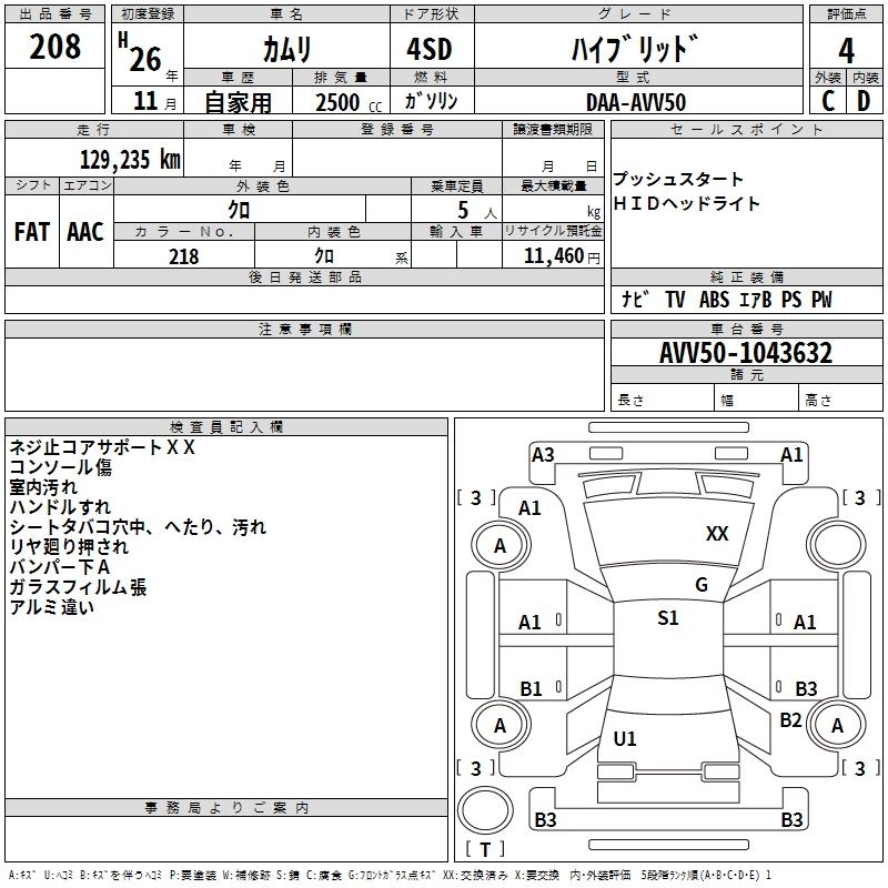 | HYBRID LEATHER PACKAGE | DAA-AVV50 | 2AR-FXE | FF | CVT | 2493cc | 160ps(118kW)/5700rpm | AИ-92 | 3 939 429 | |