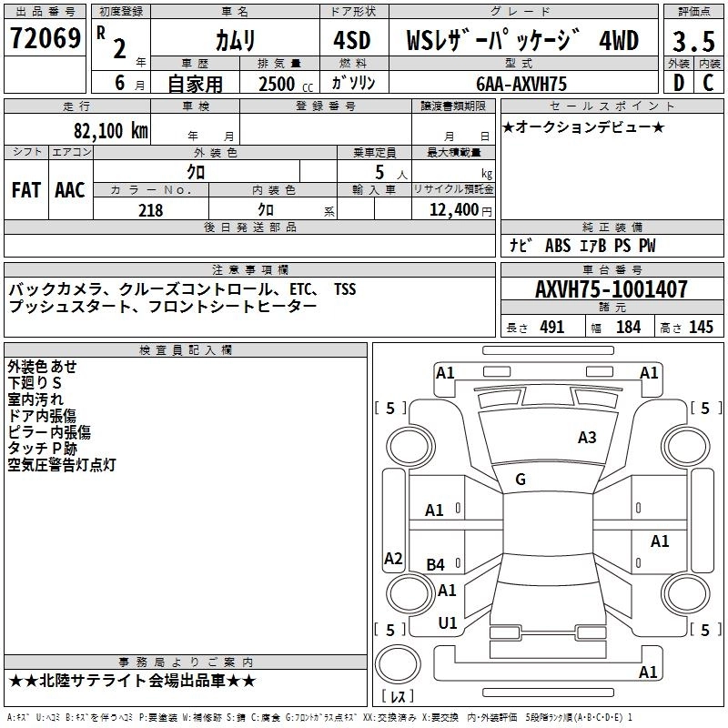 | G | 6AA-AXVH70 | A25A-FXS | FF | CVT | 2487cc | 178ps(131kW)/5700rpm | AИ-92 | 3 794 000 | |