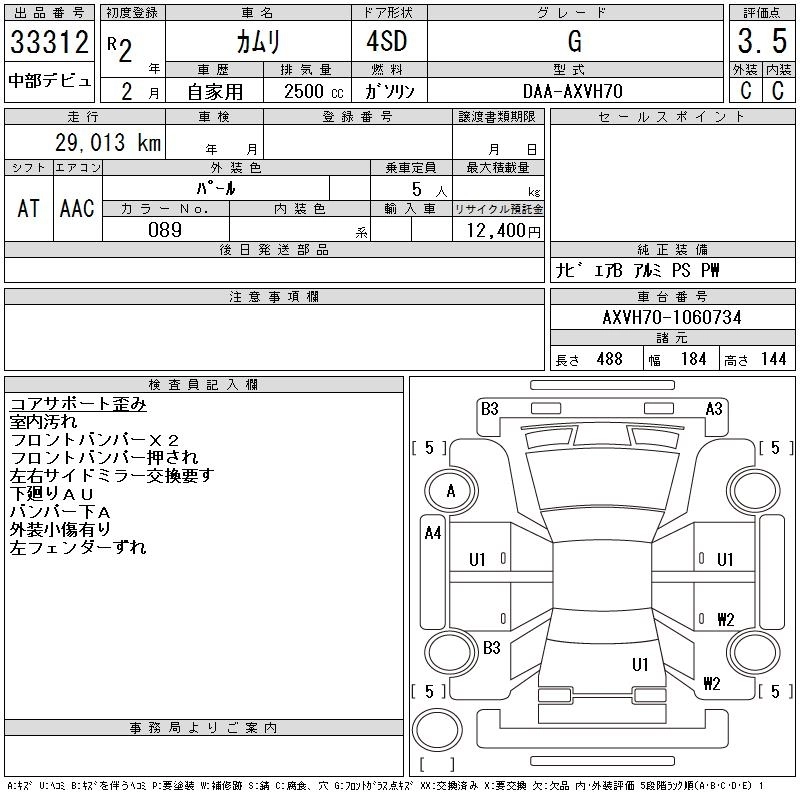 | G | 6AA-AXVH70 | A25A-FXS | FF | CVT | 2487cc | 178ps(131kW)/5700rpm | AИ-92 | 3 794 000 | |