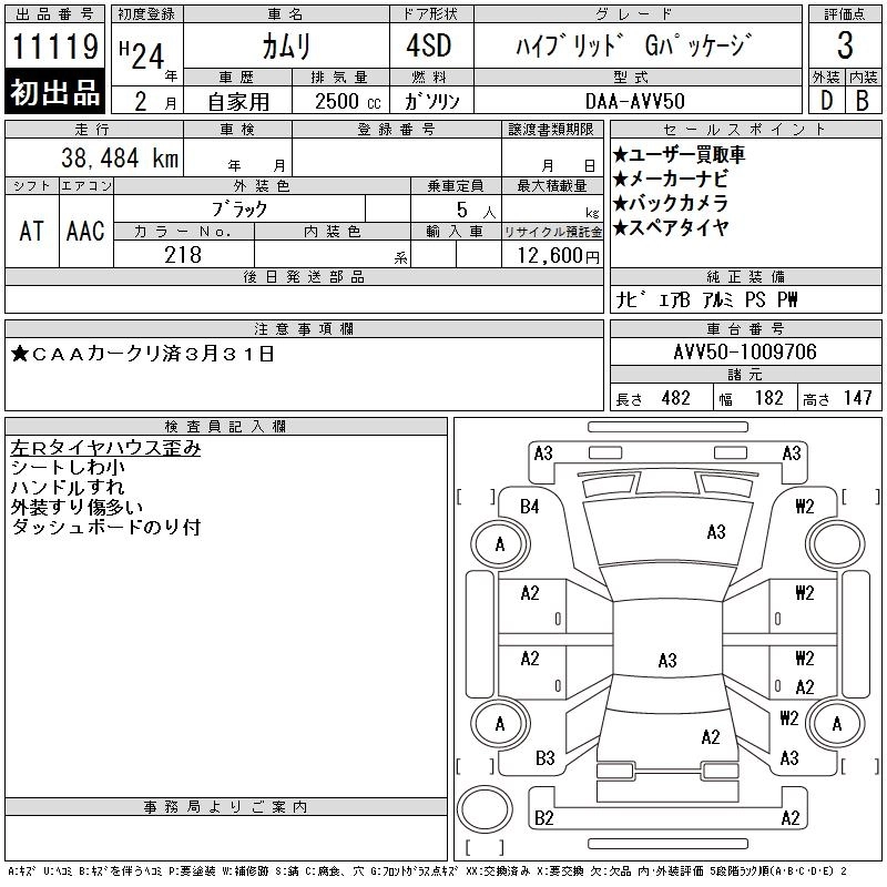 | HYBRID | DAA-AVV50 | 2AR-FXE | FF | CVT | 2493cc | 160ps(118kW)/5700rpm | AИ-92 | 3 040 000 |