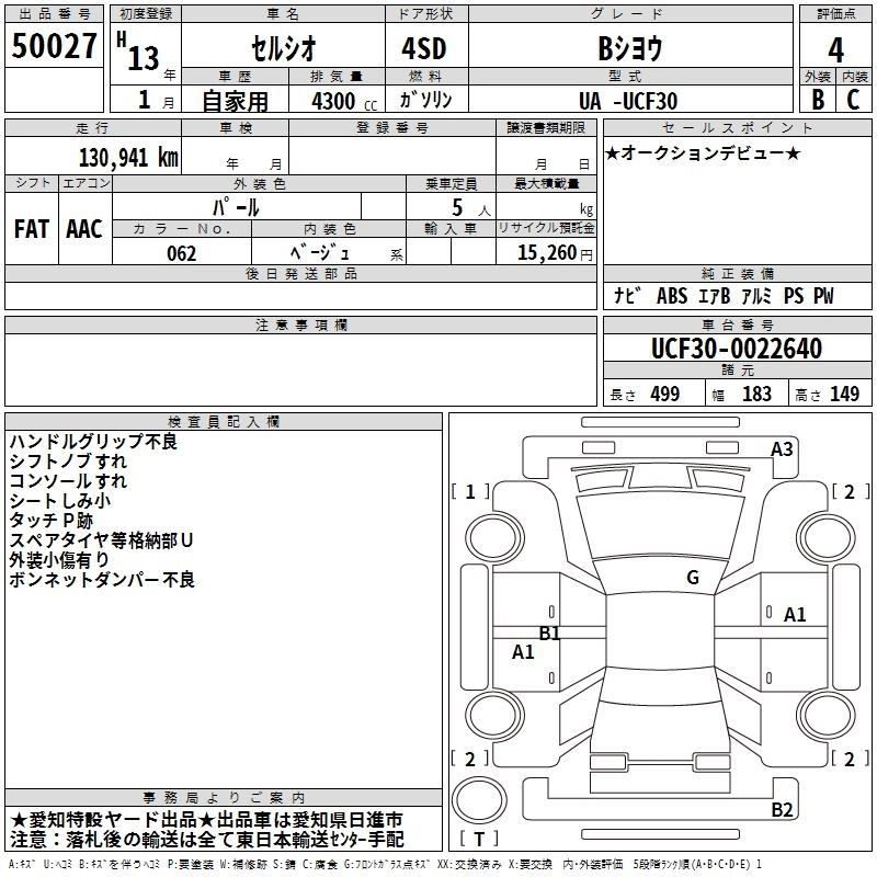 C INTERIOR SELECTION UA-UCF31 3UZ-FE FR 5AT 4292cc 280ps(206kW)/5600rpm AИ-95 6 670 000