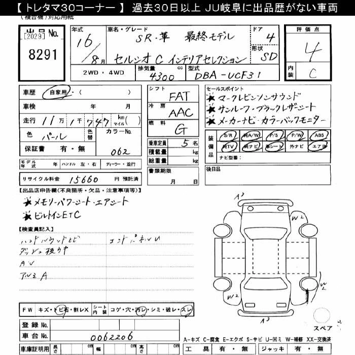 | C F PACKAGE INTERIOR SELECTION | CBA-UCF31 | 3UZ-FE | FR | 6AT | 4292cc | 280ps(206kW)/5600rpm | AИ-95 | 7 875 000 | |