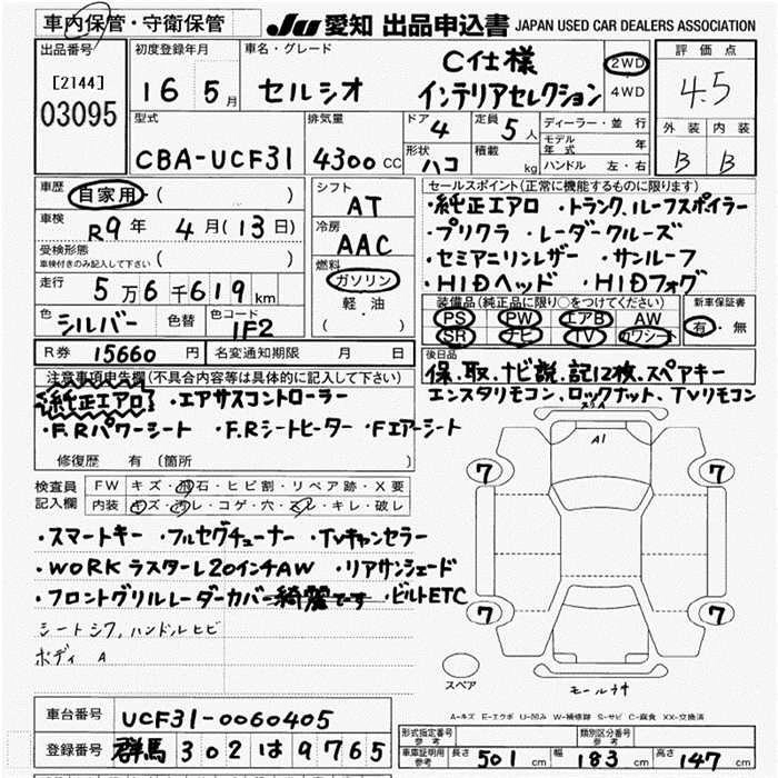| C F PACKAGE INTERIOR SELECTION | CBA-UCF31 | 3UZ-FE | FR | 6AT | 4292cc | 280ps(206kW)/5600rpm | AИ-95 | 7 875 000 | |