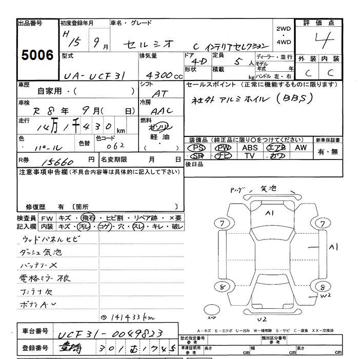 | C INTERIOR SELECTION | UA-UCF31 | 3UZ-FE | FR | 6AT | 4292cc | 280ps(206kW)/5600rpm | AИ-95 | 6 870 000 | |