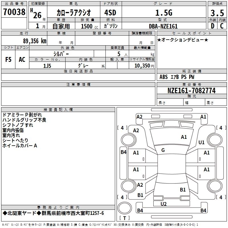 | 1.5X | DBA-NZE161 | 1NZ-FE | FF | CVT | 1496cc | 109ps(80kW)/6000rpm | AИ-92 | 1 481 143 | |