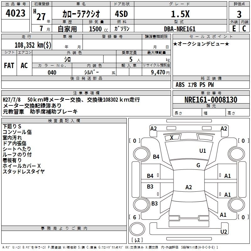 1.5X DBA-NZE161 1NZ-FE FF 5MT 1496cc 109ps(80kW)/6000rpm AИ-92 1 466 837