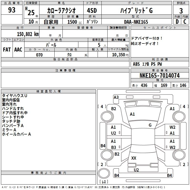 TOYOTA COROLLA AXIO 2013 г., лот № 93
