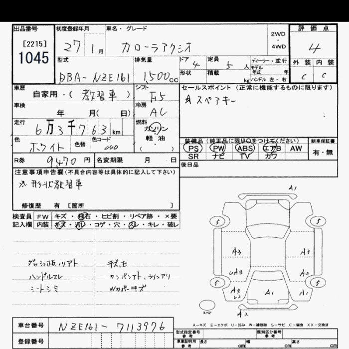 | 1.5X | DBA-NZE164 | 1NZ-FE | Full-time 4WD | CVT | 1496cc | 103ps(76kW)/6000rpm | AИ-92 | 1 726 037 | |