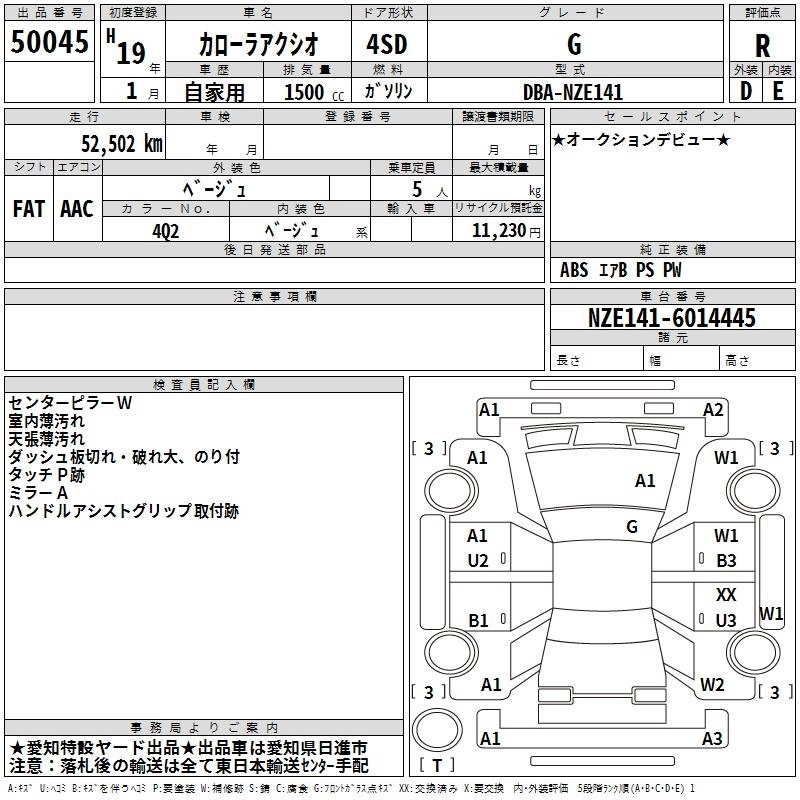| X HID SELECTION | DBA-NZE141 | 1NZ-FE | FF | 5MT | 1496cc | 110ps(81kW)/6000rpm | AИ-92 | 1 501 500 |