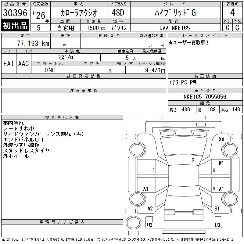 | 1.5X | DBA-NZE161 | 1NZ-FE | FF | CVT | 1496cc | 109ps(80kW)/6000rpm | AИ-92 | 1 481 143 | |