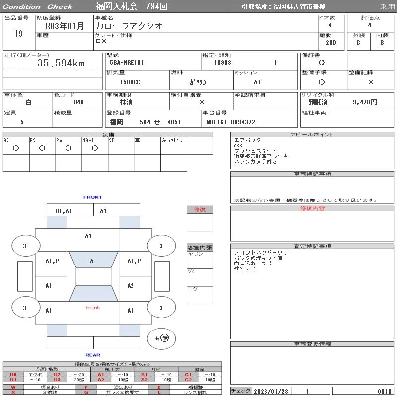 Статус выставлен на аукцион Лот 19 Аукцион ORIX Fukuoka Дата аукциона 03.02.2026