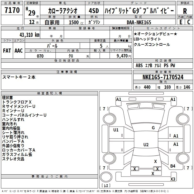 | HYBRID G | DAA-NKE165 | 1NZ-FXE | FF | CVT | 1496cc | 74ps(54kW)/4800rpm | AИ-92 | 2 298 240 | |