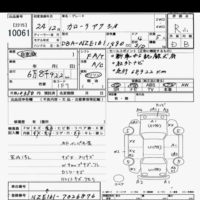 | 1.3X | DBA-NRE160 | 1NR-FE | FF | CVT | 1329cc | 95ps(70kW)/6000rpm | AИ-92 | 1 395 000 | |