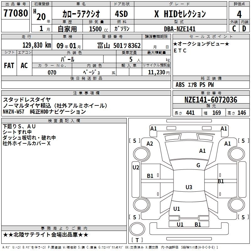 | X | DBA-NZE141 | 1NZ-FE | FF | CVT | 1496cc | 110ps(81kW)/6000rpm | AИ-92 | 1 440 000 | |
