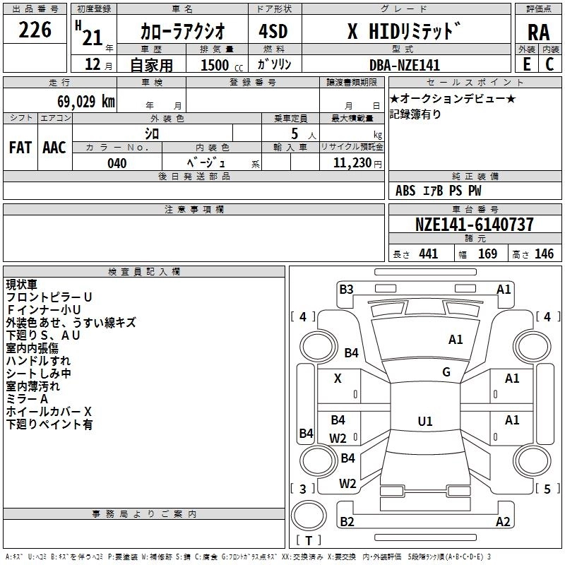 | X HID LIMITED | DBA-NZE141 | 1NZ-FE | FF | 5MT | 1496cc | 110ps(81kW)/6000rpm | AИ-92 | 1 456 000 | |