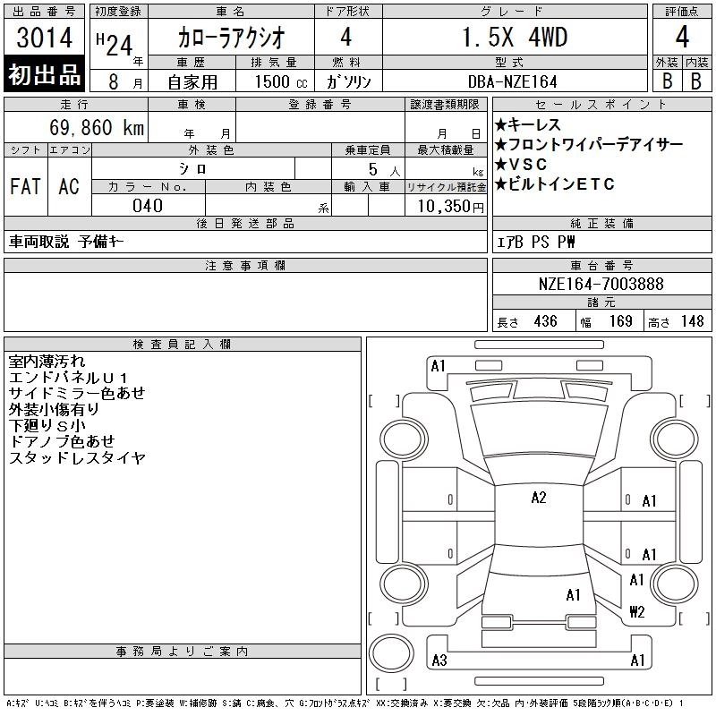 | 1.5X | DBA-NZE164 | 1NZ-FE | Full-time 4WD | CVT | 1496cc | 103ps(76kW)/6000rpm | AИ-92 | 1 629 000 | |