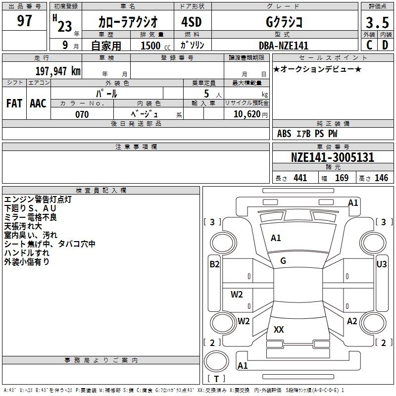 | G KURASHIKO | DBA-NZE141 | 1NZ-FE | FF | CVT | 1496cc | 110ps(81kW)/6000rpm | AИ-92 | 1 750 000 |