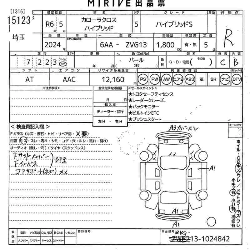 TOYOTA COROLLA CROSS 2024 г., лот № 15123