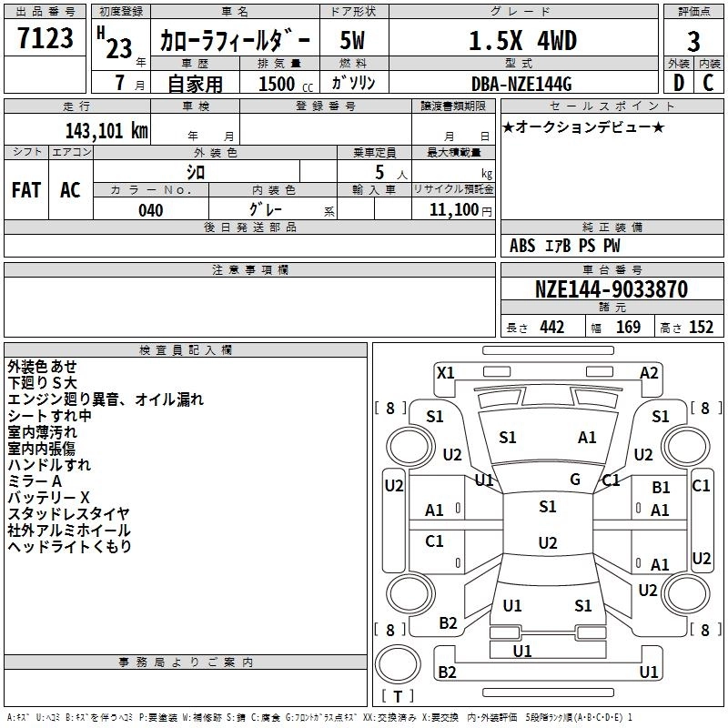 | X HID EXTRA LIMITED | DBA-NZE144G | 1NZ-FE | Full-time 4WD | CVT | 1496cc | 105ps(77kW)/6000rpm | AИ-92 | 1 884 000 | |